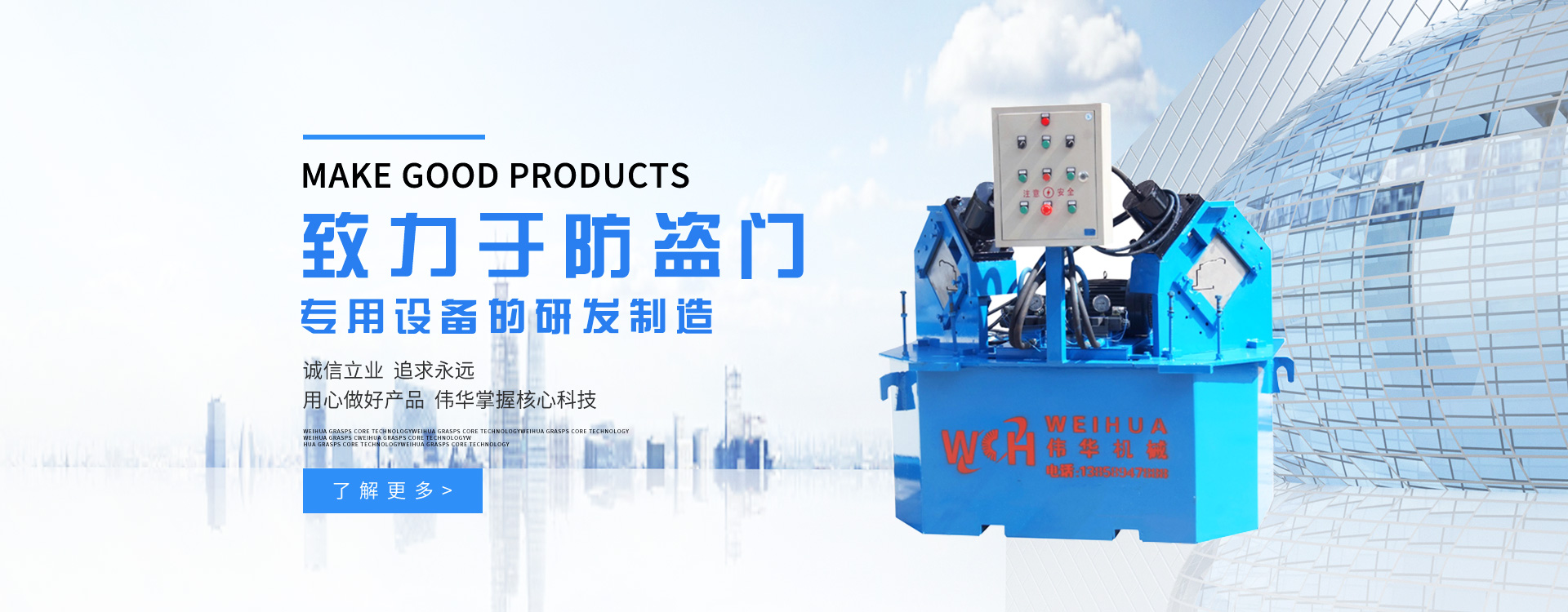 更多>溫州偉華機械制造有限公司地處浙江溫州瑞安市塘下工業區,創建于2009年,數年來全心致力于防盜門專用設備的研發制造,主營產品有:門面成型機、門框成型機、熱壓膠合機、組合沖床、液壓折邊機、雙頭沖床、門面開平機。現已具備獨特的管理模式和產品開發能力,歷經多年的努力,現已發展成為國內最具影響力的機械設備企業之一。